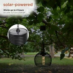 - 24 LED lights encased in this classic lantern are powered by solar energy to keep your outdoor yard dΓ©cor lit for up to 8 hours on one full charge