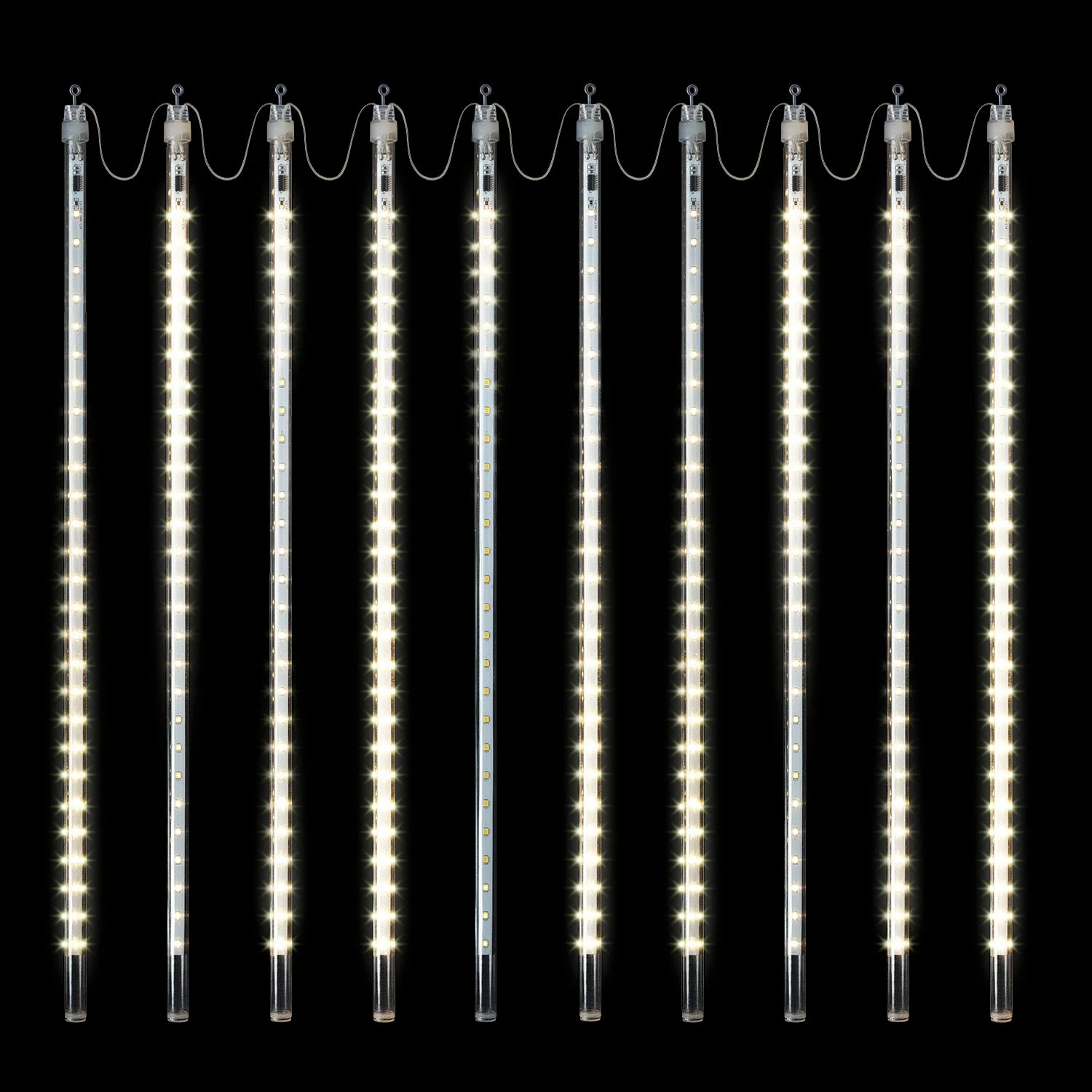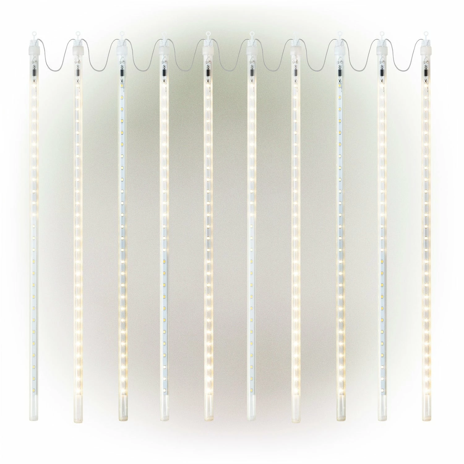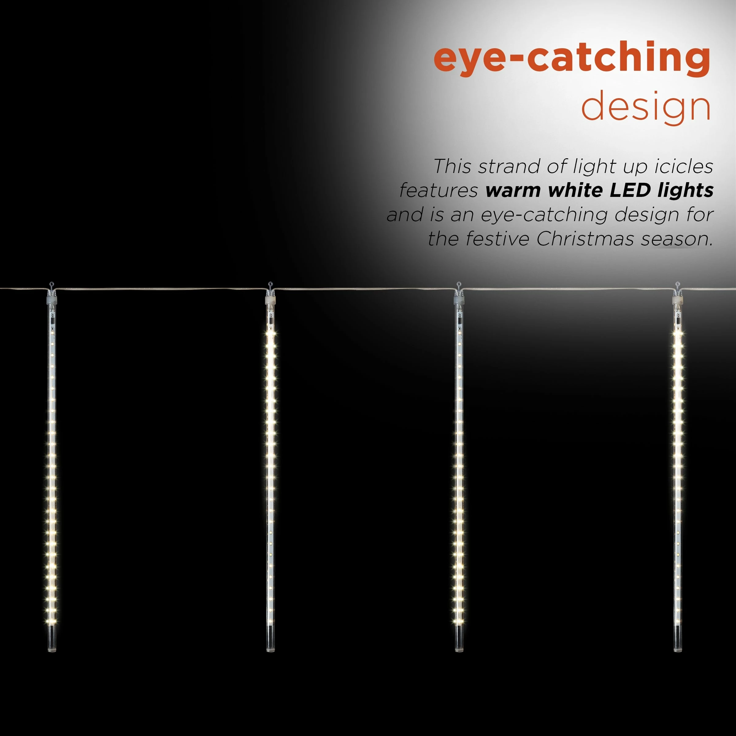 - String of 10 icicles, each with 54 warm white LED lights creates a dazzling display