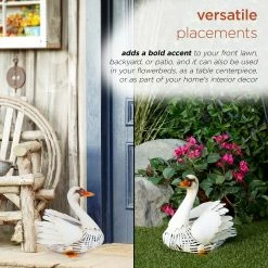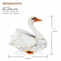 Add a charming accent to your indoor or outdoor space with the Alpine Corporation Metal White Swan Garden Decoration. This metal lawn figurine features a white feathered swan to offer a friendly welcome to your guests. This stunning statue can be placed on its own or paired with multiple statues to create an artful display. It can also be used as a decorative accent in your flowerbeds, as a table centerpiece, or as part of your home’s interior decor. Made from durable metal, this lawn decoration is weather-resistant and rust-resistant for years of quality use. This metal bird statue measures 15″L x 8″W x 11″H to make a statement indoors and outdoors, and it includes a one year manufacturer’s warranty from date of purchase.Alpine Corporation is one of America’s leading designers, importers, and distributors of superior quality home and garden decor products. Alpine’s award winning in-house design team continuously develops new and innovative “statements pieces” for your home and garden. Your outdoor living spaces will be the envy of the neighborhood with our wide assortment of fresh, fashionable and contemporary products, from beautifully crafted solar garden stakes featuring patented motion and fiber optic lighting technology to beautiful fountains and delightful bird baths and feeders.
