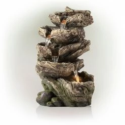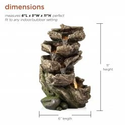 Relax to the sounds of nature with the Alpine Corporation 11″ tall Indoor/Outdoor 5-Tier Rainforest Waterfall Fountain with LED Lights. This cascading rainforest waterfall floor tabletop fountain provides a tranquil and soothing addition to your porch, backyard, or lawn or indoor living space. Constructed from durable polystone resin, stone powder, and fiberglass with a natural look and realistic textures, the fountain is weatherproof, rust-resistant, and resilient. This lawn statue will bring a touch of natural beauty to your home, whether inside or in your outdoor space. Replicating natural surfaces, the fountain becomes illuminated with the included LED lights. The beautifully crafted fountain imitates the natural drips of a forest. Relax to the sounds of the soft, natural water flow as it trickles down through the tiers. Not only will the fountain provide you with serenity, it will also attract birds to your outdoor area, which in turn promotes healthy gardens. This floor fountain provides an elegant addition to your courtyard, patio, or yard or interior space, and gives your garden visual interest with its natural waterfall style. For quick installation and convenient operating, the fountain includes all necessary parts, as well as a pump, to begin creating an outdoor oasis. This standing fountain measures 6″L x 5″W x 11″H and includes a one-year manufacturer’s warranty from date of purchase.Alpine Corporation is one of America’s leading designers, importers, and distributors of superior quality home and garden decor products. Alpine’s award winning in-house design team continuously develops new and innovative “statement pieces” for your home and garden. Your outdoor living spaces will be the envy of the neighborhood with our wide assortment of fresh, fashionable and contemporary products, from beautifully crafted solar garden stakes featuring patented motion and fiber optic lighting technology to gorgeous glass and glow-in-the-dark birdbaths and feeders.