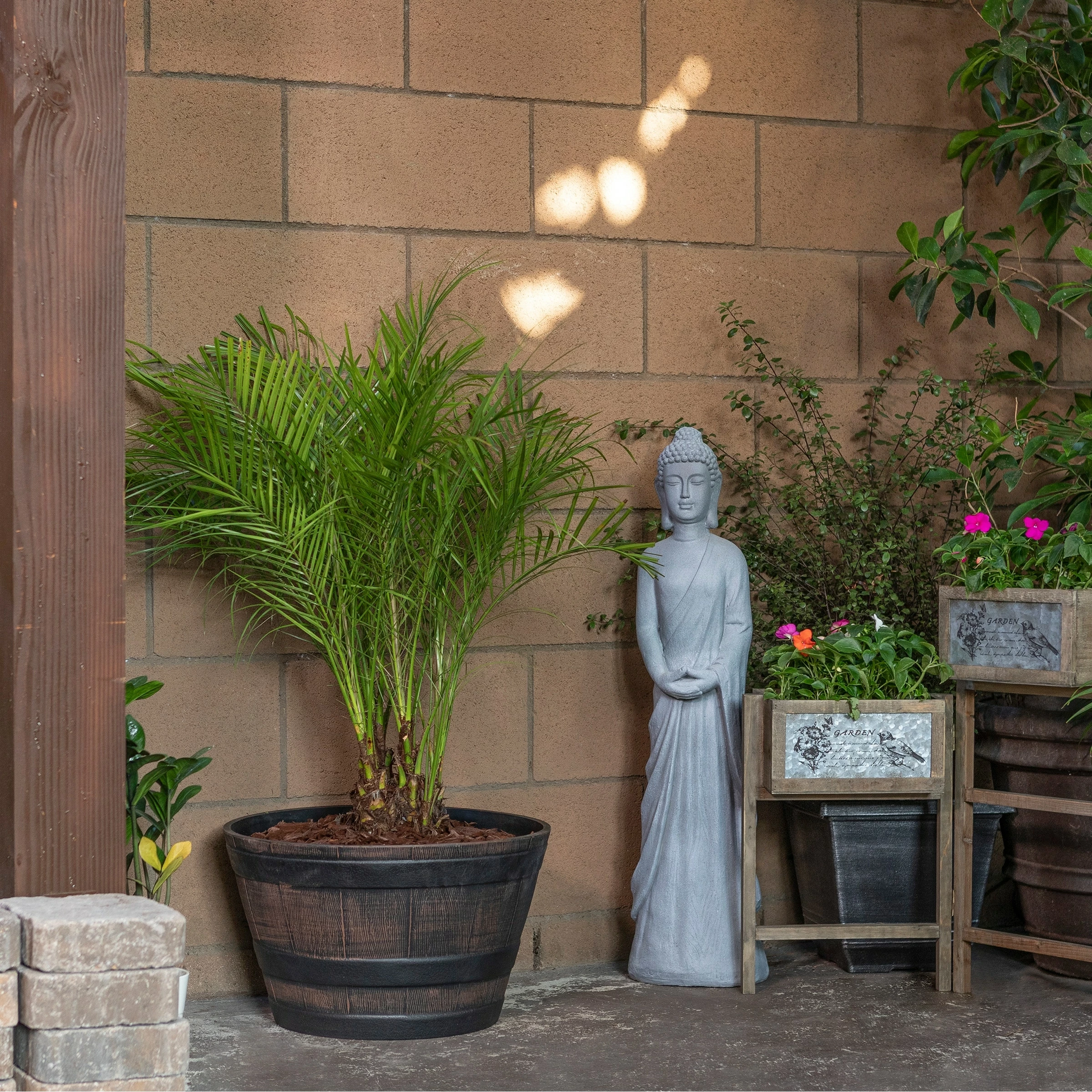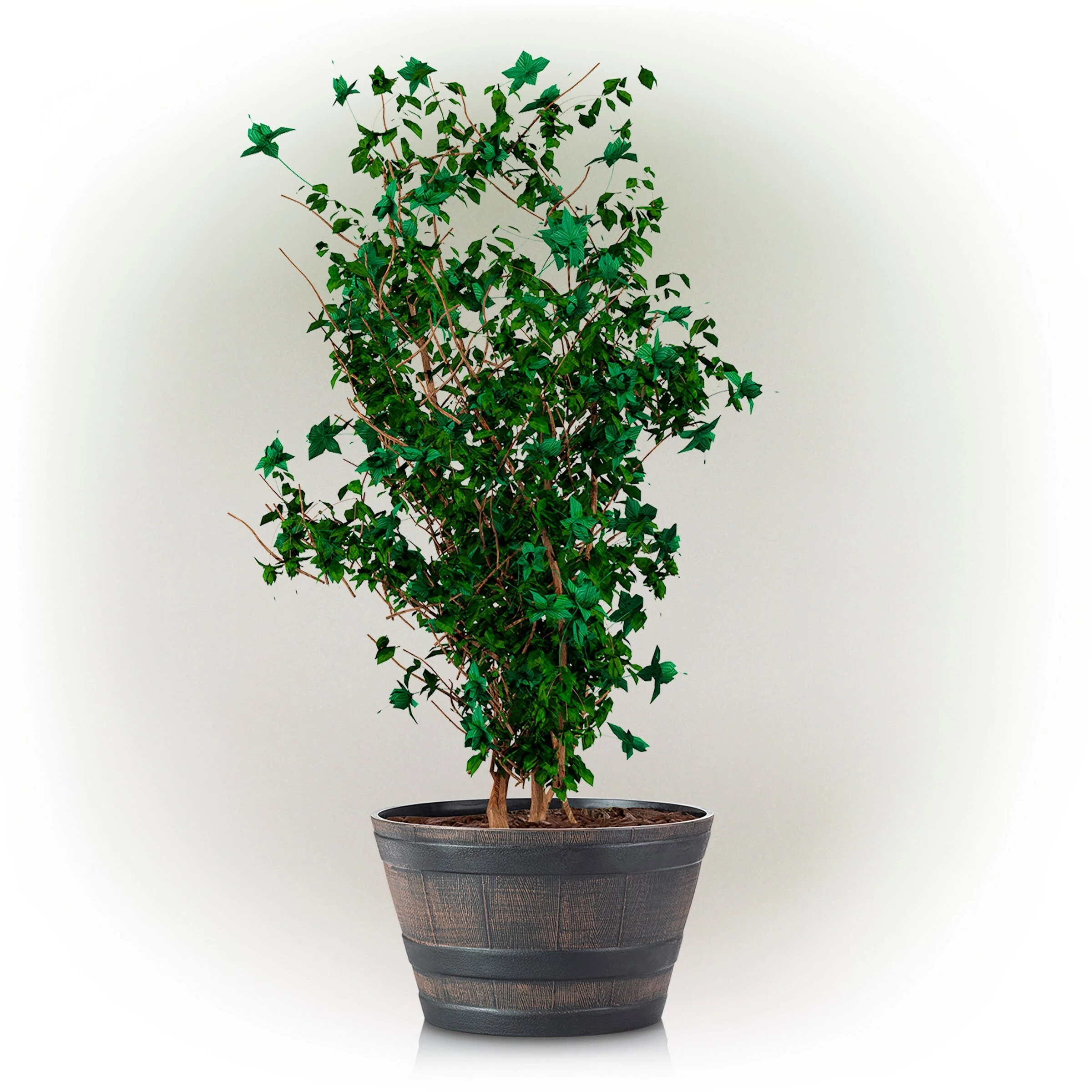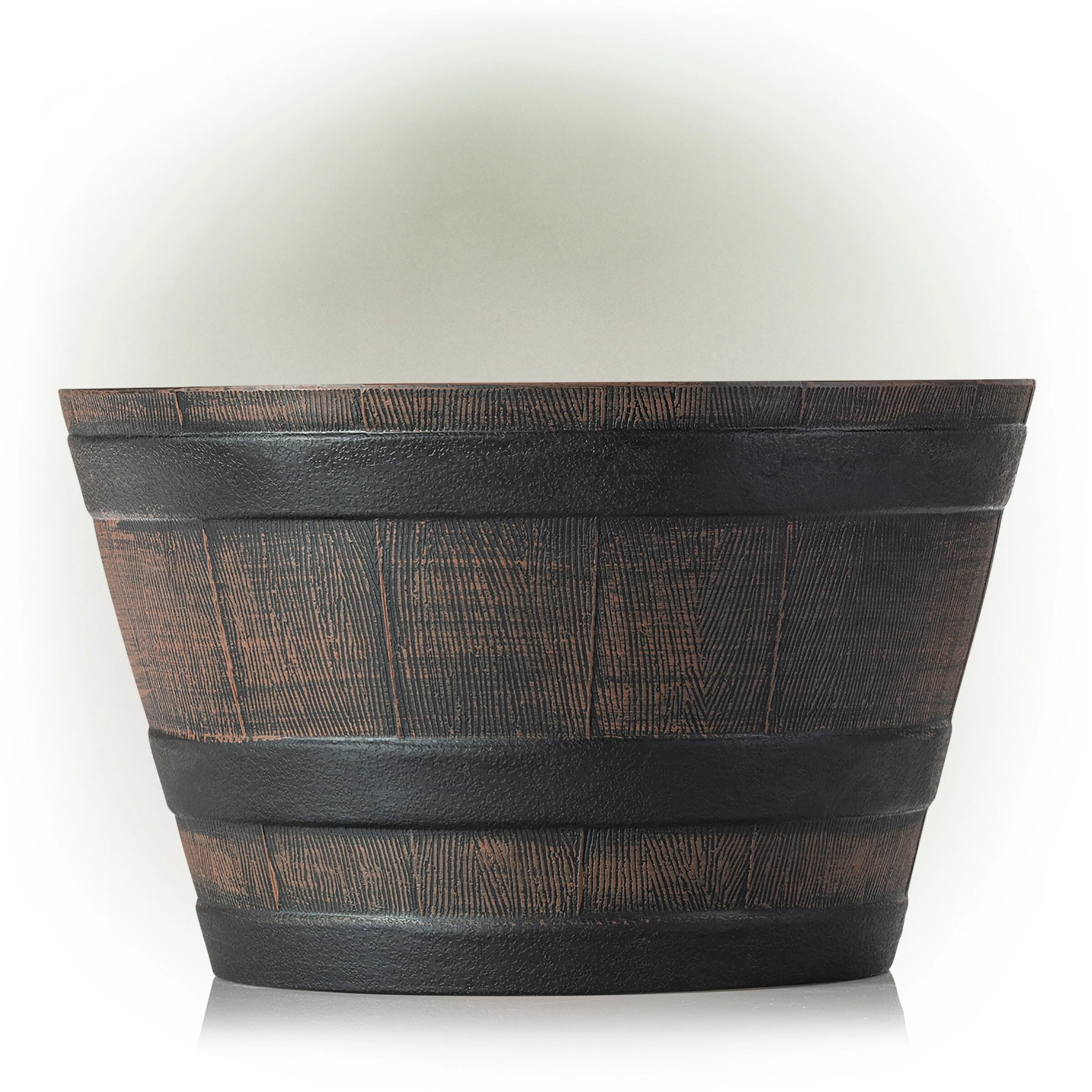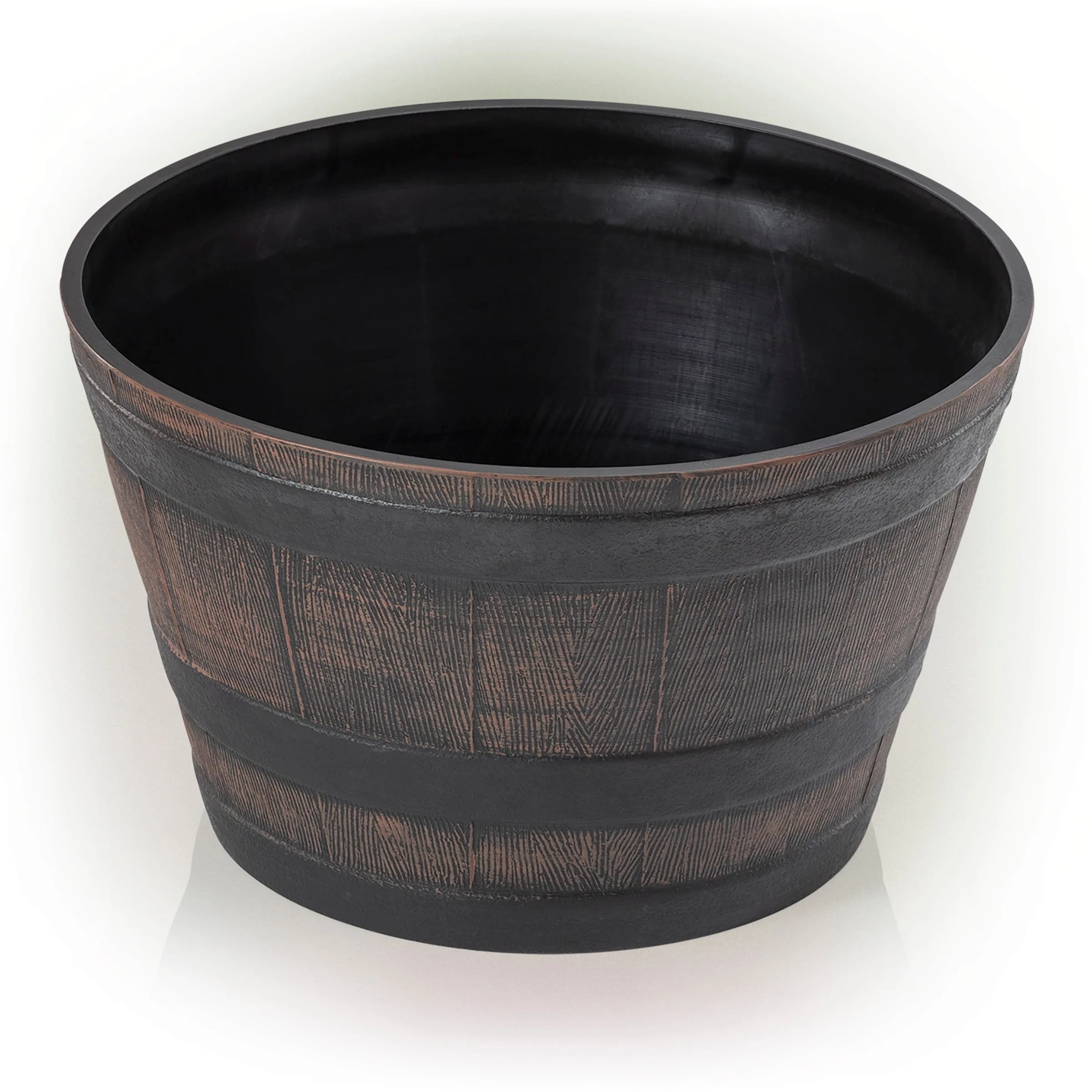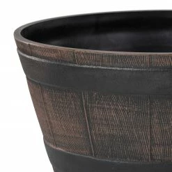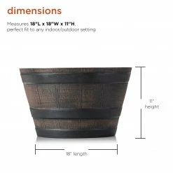 - Constructed from resilient and weather-resistant plastic, the barrel shaped planter will provide long-lasting quality use in your garden or home’s entryway