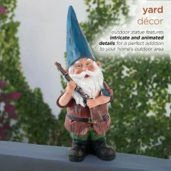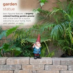 - Lawn figurine features a brightly colored hunting garden gnome for a joyous welcome to your home, front yard, garden, or patio