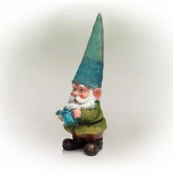 Legend has it that garden gnomes will provide you with mythical powers to keep your garden lush and green, while keeping you safe from evil spirits. With the 15″ tall Outdoor Garden Gnome Yard Decoration from Alpine Corporation, you can add joy and whimsy to your outdoor area. The lawn figurine features a brightly colored, friendly garden gnome holding a watering can for a joyous welcome to your home, front yard, garden, or patio. Constructed from durable polyresin, the yard decoration is weatherproof and rust-resistant for years of quality use on your lawn or outdoor living area. The outdoor statue features intricate, life-like details, making it ideal for placing near your front door or driveway. Add multiple statues to create an enchanted garden display and gnome community. They can also be used as a decorative accent in your flowerbeds or in your home’s interior decor. This compact outdoor statue measures 5″L x 6″W x 15″H to fit almost any indoor or outdoor space, and includes a one-year manufacturer’s warranty from date of purchase.Alpine Corporation is one of America’s leading designers, importers, and distributors of superior quality home and garden decor products. Alpine’s award winning in-house design team continuously develops new and innovative “statement pieces” for your home and garden. Your outdoor living spaces will be the envy of the neighborhood with our wide assortment of fresh, fashionable and contemporary products, from beautifully crafted solar garden stakes featuring patented motion and fiber optic lighting technology to gorgeous glass and glow-in-the-dark birdbaths and feeders.