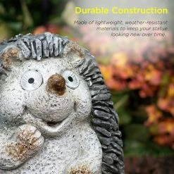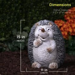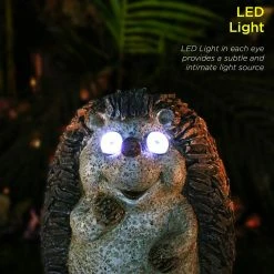 - Features a pair of LED lights located in the hedgehog’s eyes powered by solar energy to keep your outdoor yard statue lit up all night