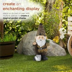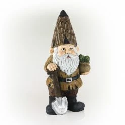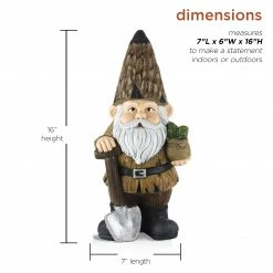Legend has it that garden gnomes will provide you with mythical powers to keep your garden lush and green, while keeping you safe from evil spirits. With the Alpine Corporation Garden Gnome with Shovel and Plant Decoration, you can add a whimsical accent to your front lawn, porch, patio, or inside your home. This lawn figurine features a playful garden gnome holding a plant and shovel to offer a warm welcome to your guests. The colorful details make this gnome a focal point wherever it’s displayed. This indoor/outdoor statue can be placed on its own or paired with multiple statues to create an enchanting garden display. It can also be used as a decorative accent in your flowerbeds, as a table centerpiece, or as part of your home’s interior decor. Made from durable polystone with a colorful painted finish, this lawn gnome is weather and rust-resistant for years of quality use. This friendly garden gnome measures 7″L x 6″W x 16″H to make a statement indoors and outdoors, and it includes a one year manufacturer’s warranty from date of purchase.Alpine Corporation is one of America’s leading designers, importers, and distributors of superior quality home and garden decor products. Alpine’s award winning in-house design team continuously develops new and innovative “statements pieces” for your home and garden. Your outdoor living spaces will be the envy of the neighborhood with our wide assortment of fresh, fashionable and contemporary products, from beautifully crafted solar garden stakes featuring patented motion and fiber optic lighting technology to beautiful fountains and delightful bird baths and feeders.