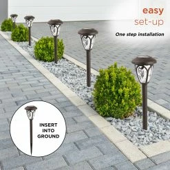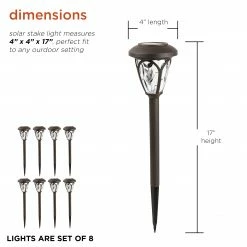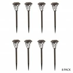 - Includes 8 brown stakes to illuminate your front lawn, sidewalk, driveway, or pathway display.