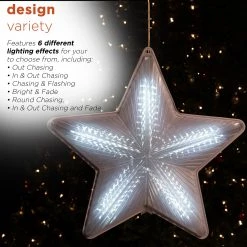 Upgrade your holiday dΓ©cor with the Alpine Corporation’s 19″H Christmas 3D Hanging Star Ornament! This white star ornament is perfect for your festive display. It features 60 LED lights for stunning lighting effects to brighten your home. The ornament includes 6 unique lighting functions: Wave, Chasing, Sequential, Slow Glow, Flashing, and Twinkle. Turn it on to add a unique ambiance to your Christmas tree or create an eye-catching display. Constructed of durable PVC, this ornament is built for lasting use. Hang it around your home or on your Christmas tree! The Alpine Corporation 3D Hanging Star Ornament measures 19″L x 2″W x 19″H, perfect for your holiday decorations.Alpine Corporation is one of America’s leading designers, importers, and distributors of superior quality home and garden decor products. Alpine Corporation’s award winning in-house design team continuously develops new and innovative “statement pieces” for your home and garden. Your indoor and outdoor living spaces will be the envy of the neighborhood with our wide assortment of fresh, fashionable and contemporary products, from beautifully crafted solar garden stakes featuring patented motion and fiber optic lighting technology to beautiful fountains and delightful bird baths and feeders.