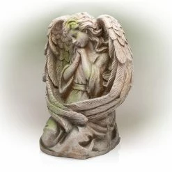 Add a touch of serenity to your outdoor space with the Alpine Corporation 19″ tall Old World Guardian Angel Outdoor Garden Statue. This stunning and peaceful angel is constructed with durable fiberstone and fiberglass but finished to look like moss-covered stone. The statue is weatherproof, rust-resistant, and durable for years of quality use. With its antique look, intricate details and portrayal of a guardian angel, this Alpine Corporation statue is sure to bring peace and tranquility to your home! The statue is perfect for your garden, patio, deck, porch, or yard space. Add one or more statues to your yard for a beautiful outdoor display. Statue measures 15″L x 11″W x 19″H for use in yards of any size and includes a one year manufacturer’s warranty from date of purchase.Alpine Corporation is one of America’s leading designers, importers, and distributors of superior quality home and garden decor products. Alpine’s award winning in-house design team continuously develops new and innovative “statements pieces” for your home and garden. Your outdoor living spaces will be the envy of the neighborhood with our wide assortment of fresh, fashionable and contemporary products, from beautifully crafted solar garden stakes featuring patented motion and fiber optic lighting technology to gorgeous glass and glow-in-the-dark birdbaths and feeders.