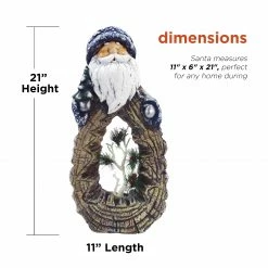 - Santa statue measures 11″L x 6″W x 21″H, perfect for any home during the best time of the year. A one-year manufacturer’s warranty from date of purchase is also included.