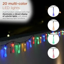- Set of 2 solar string lights add a colorful ambiance for outdoor entertaining and enjoyment.