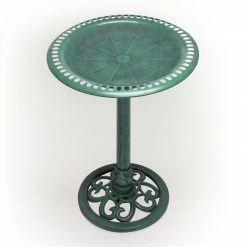 Beckon feathered friends to your yard with the Alpine Corporation Birdbath with Scrollwork. Fill the bath with fresh water and enjoy watching all the birds congregate near your patio, garden, deck, yard, or pool! This high-quality birdbath features a gorgeous polypropylene design with perforated edges on the basin all painted with a green color β great for adding an elegant touch to your outdoor dΓ©cor. It is perfect for pairing with a bird feeder to coax a variety of birds outside your window during any season. The sturdy base keeps the birdbath from tipping over while the plastic construction withstands weather changes. Your yard will be the delight of humans and winged creatures alike! With a 1-year warranty, you can be confident in the quality of your purchase. Birdbath measures 20″ L x 20″W x 28″H for use in yards of any size. Alpine Corporation is one of America’s leading designers, importers, and distributors of superior quality home and garden dΓ©cor products. Alpine’s award winning in-house design team continuously develops new and innovative “statements pieces” for your home and garden. Your outdoor living spaces will be the envy of the neighborhood with our wide assortment of fresh, fashionable and contemporary products, from beautifully crafted solar garden stakes featuring patented motion and fiber optic lighting technology to gorgeous glass and glow-in-the-dark birdbaths and feeders.