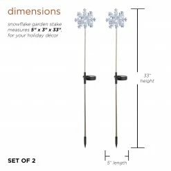 - Each snowflake stake measures 5″L x 3″W x 33″H, perfect for your holiday dΓ©cor. A one-year manufacturer’s warranty from date of purchase is also included.