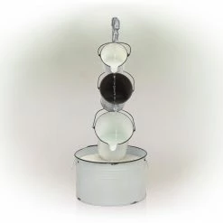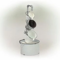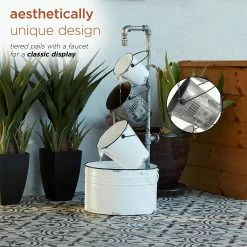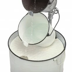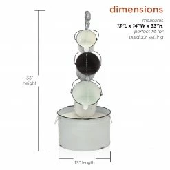 Add a touch of old-fashioned whimsy to your lawn with the Alpine Corporation 33″ Tall Rustic Metal Pails Fountain Yard Decoration. This vintage floor fountain provides a tranquil and rustic addition to your living space, bedroom, porch, backyard, or lawn. Constructed from durable metal with a classic cream white look and realistic textures, the fountain is weatherproof and resilient. This lawn statue will bring a touch of natural beauty to your outdoor space. Featuring metal pails, this fountain adds a classic Americana look to your home’s outdoor space. Relax to the sounds of the soft, natural water flow as it trickles down. Not only will the fountain provide you with serenity, it will also attract birds to your outdoor area, which in turn promotes healthy gardens. This water fountain provides a timeless addition to your indoor living area, courtyard, patio, or yard, and gives your garden visual interest with its vintage style. For quick installation and convenient operating, the fountain includes all necessary parts, as well as a pump, to begin creating an outdoor oasis. This standing fountain measures 13″L x 14″W x 33″H and includes a one-year manufacturer’s warranty from date of purchase.Alpine Corporation is one of America’s leading designers, importers, and distributors of superior quality home and garden decor products. Alpine’s award winning in-house design team continuously develops new and innovative “statement pieces” for your home and garden. Your outdoor living spaces will be the envy of the neighborhood with our wide assortment of fresh, fashionable and contemporary products, from beautifully crafted solar garden stakes featuring patented motion and fiber optic lighting technology to gorgeous glass and glow-in-the-dark birdbaths and feeders.