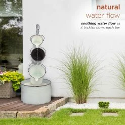- For quick installation and convenient operating, the beautifully trickling fountain includes all necessary parts, as well as a pump, to begin creating an outdoor oasis