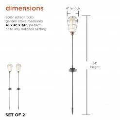 Vintage in style, industrial by design, the Alpine Corporation 34″ Tall Outdoor Solar Powered Edison Bulb Garden LED Stake comes as a set of 2 and will add a unique flare to your garden or outdoor space! This edison bulb design will illuminate your front lawn, sidewalk, driveway, or pathway display for up to 8 hours on a full charge . The 5 solar-powered LEDs in the stake light need no electricity. With a sturdy metal frame, the durable design of this stake provides long-lasting use year after year. Simply plant the stake into the ground for quick and easy setup. At over 2 feet tall, the Alpine Corporation 34″ Tall Outdoor Solar Powered Edison Bulb Garden LED Stake measures 4″ x 4″ x 34″ each to make a statement in your garden and is perfect for pairing with additional Alpine yard stakes (sold separately).Alpine Corporation is one of America’s leading designers, importers, and distributors of superior quality home and garden decor products. Alpine Corporation’s award winning in-house design team continuously develops new and innovative “statement pieces” for your home and garden. Your outdoor living spaces will be the envy of the neighborhood with our wide assortment of fresh, fashionable and contemporary products, from beautifully crafted solar garden stakes featuring patented motion and fiber optic lighting technology to gorgeous glass and glow-in-the-dark bird baths and feeders.