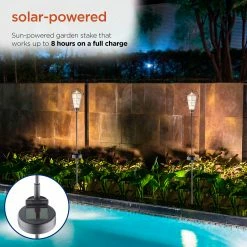 - Let the state-of-the-art solar panels do the work for you. Simply stick the durable stakes into soft ground for versatile decorating.