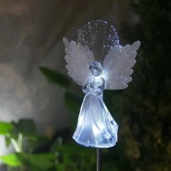 - Peaceful angel garden stakes set with fiber optic wings is the perfect addition to any holiday display and can be used year-round