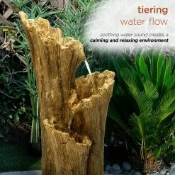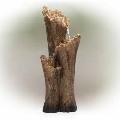- Constructed from durable polystone and fiberglass with a realistic natural aged wood look and realistic textures, the fountain is weatherproof, rust-resistant, and resilient