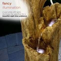 - 3-tier natural look bark cascading floor fountain with 2 cool white long-lasting LED lights provides a tranquil and soothing addition to your outdoor living space, porch, or lawn