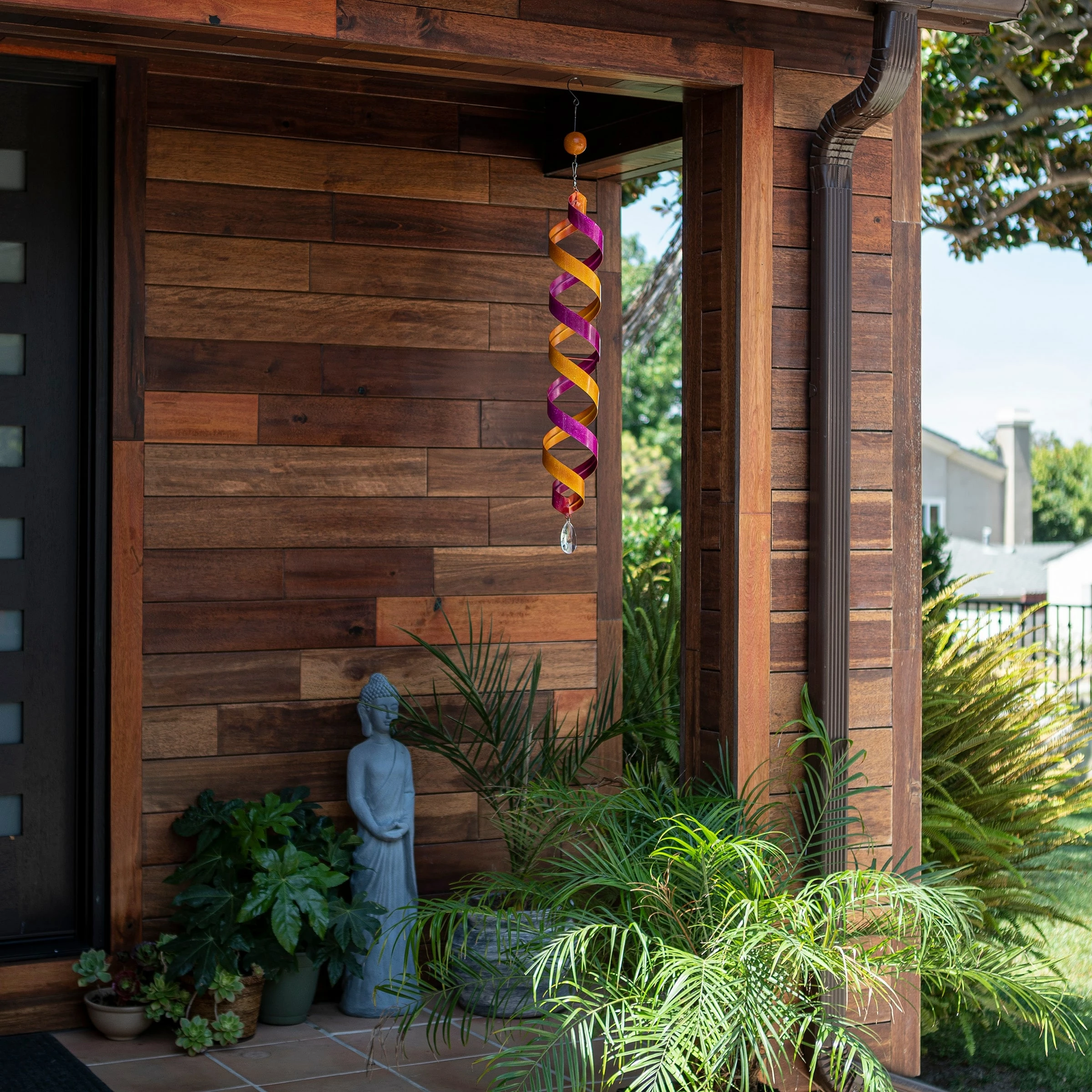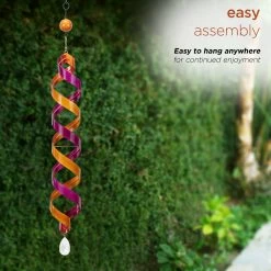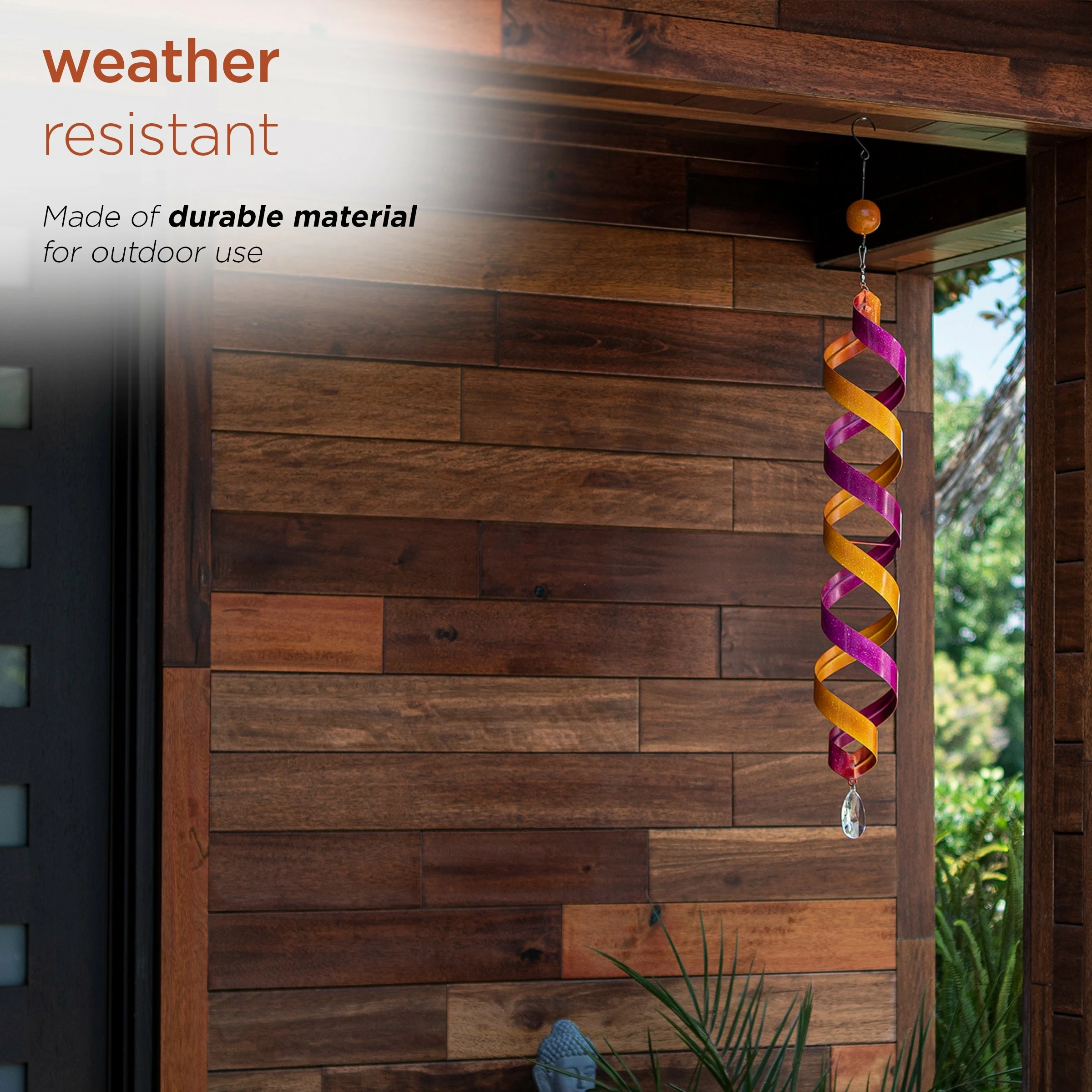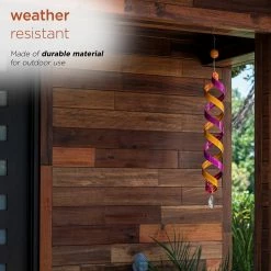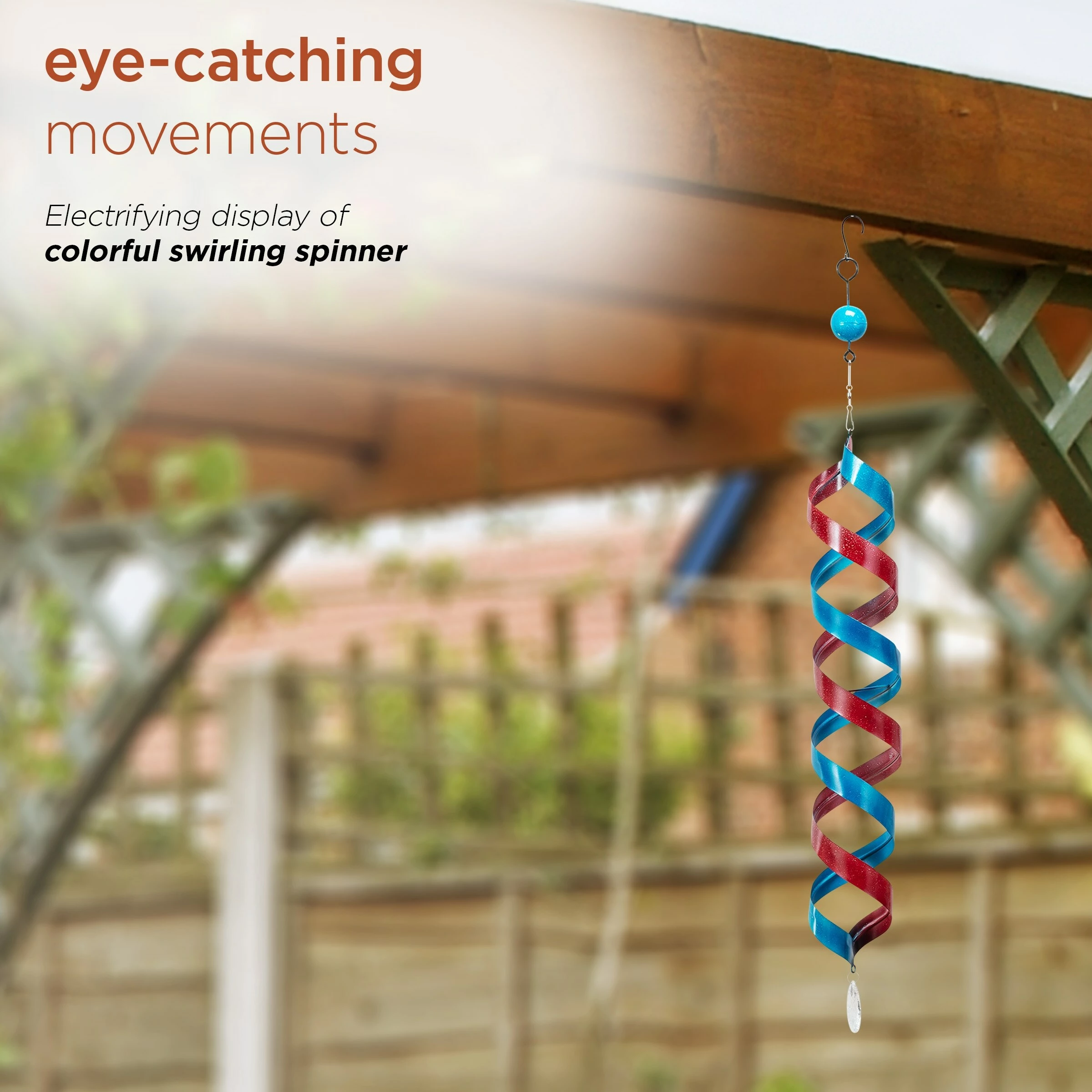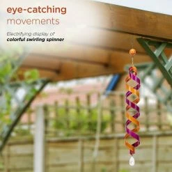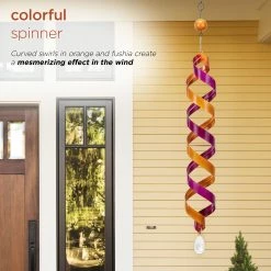 - Wind spinner is made from multi-colored curved swirls to provide a unique and playful addition to your home’s exterior dΓ©cor