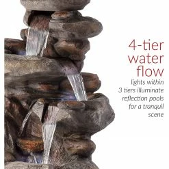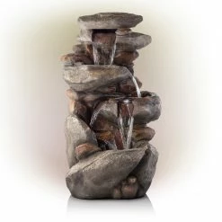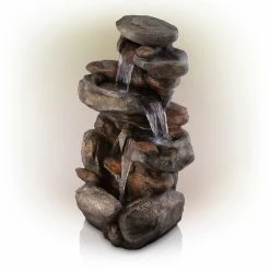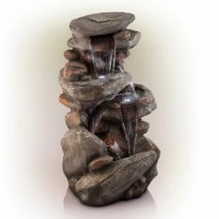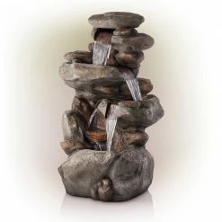 Relax and enjoy the sounds of nature with the Alpine Corporation 4-Tier Rock Fountain! You will feel like you are sitting next to a majestic mountain stream in the great outdoors all while relaxing in your own backyard. This outdoor fountain looks great in your garden, patio, deck, porch, or yard space. Take in the tranquil sounds of the water gently cascading over natural-looking gray stone. The resin, stone powder, and fiberglass construction is weatherproof, rust-resistant, and durable for years of quality use. The three LED lights in the fountain tiers accent the movement of the trickling water for a subtle yet beautiful light source, day or night. To use, simply attach the pump to the hose, plug it into an outdoor outlet, fill the lower level with water, and watch as the interior pump creates a lovely water flow reminiscent of a lush rainforest. With a 1-year warranty, you can be confident in the quality of your purchase. Fountain measures 23″L x 18″W x 40″H for use in any indoor or outdoor setting. Alpine Corporation is one of America’s leading designers, importers, and distributors of superior quality home and garden dΓ©cor products. Alpine’s award winning in-house design team continuously develops new and innovative “statements pieces” for your home and garden. Your outdoor living spaces will be the envy of the neighborhood with our wide assortment of fresh, fashionable and contemporary products, from beautifully crafted solar garden stakes featuring patented motion and fiber optic lighting technology to gorgeous glass and glow-in-the-dark birdbaths and feeders.