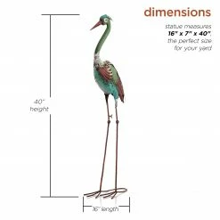 Add a touch of beauty to your outdoor space with the Alpine Corporation Rustic Metal Crane Statue. This stunning and elegant bird is constructed with durable metal materials. The statue is weather-proof, rust-resistant, and durable for years of quality use. With its blended colors and intricate details, this Alpine statue is sure to make a beautiful statement in your yard bringing peace and tranquility to your home! The statue is the perfect for your garden, patio, deck, porch, or yard space. Looks great indoors, too! With a 1-year warranty, you can be confident in the quality of your purchase. Statue measures 16″L x 7″W x 40″H for use in yards of any size. Add its partner HEH210 for double the beauty!Alpine Corporation is one of America’s leading designers, importers, and distributors of superior quality home and garden decor products. Alpine’s award winning in-house design team continuously develops new and innovative “statement pieces” for your home and garden. Your outdoor living spaces will be the envy of the neighborhood with our wide assortment of fresh, fashionable and contemporary products, from beautifully crafted solar garden stakes featuring patented motion and fiber optic lighting technology to gorgeous glass and glow-in-the-dark birdbaths and feeders.
