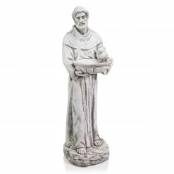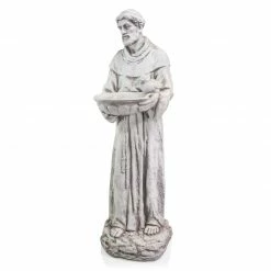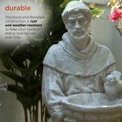 Add a touch of serenity to your outdoor space with the Alpine Corporation Saint Francis Birdbath. This stunning and peaceful sculpture is constructed with durable polystone with fiberglass materials but finished to look like stone. The statue is weather-proof, rust-resistant, and durable for years of quality use. With its antique-look, intricate details and portrayal of Saint Francis, this Alpine birdbath is sure to bring peace and tranquility to your home! Birds will love bathing in the shallow bowl. This statue can also be used as a bird feeder! The statue is perfect for your garden, patio, deck, porch, or yard space. Looks great indoors, too! With a 1-year warranty, you can be confident in the quality of your purchase. Statue measures 14″L x 18″W x 45″H for use in yards of any size. Alpine Corporation is one of America’s leading designers, importers, and distributors of superior quality home and garden dΓ©cor products. Alpine’s award winning in-house design team continuously develops new and innovative “statement pieces” for your home and garden. Your outdoor living spaces will be the envy of the neighborhood with our wide assortment of fresh, fashionable and contemporary products, from beautifully crafted solar garden stakes featuring patented motion and fiber optic lighting technology to gorgeous glass and glow-in-the-dark birdbaths and feeders.