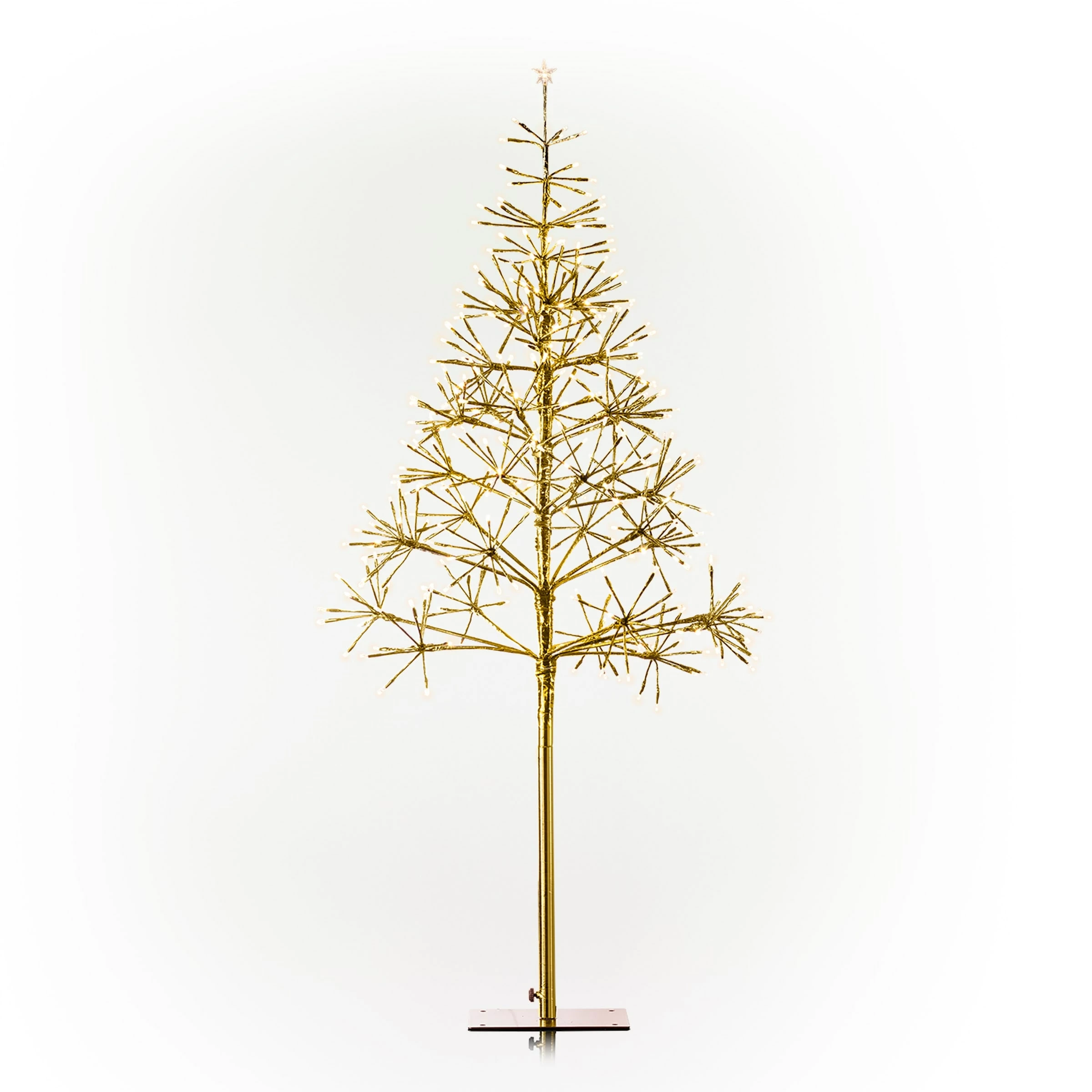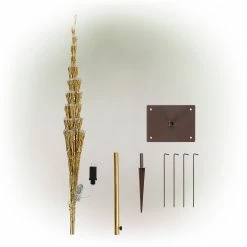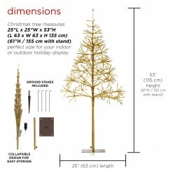 Add holiday cheer to your home with the Alpine Corporation’s 53″H Festive Gold Christmas Tree with LED Lights! This artificial tree has a large build and bright design for a festive Christmas season and makes a great addition to your indoor or outdoor scenery with its 380 glowing warm white LED lights. This tree is easy to set up indoors with its floor base or outdoors with its durable stake that plants it firmly into the ground. It meets safety standards with its UL listed plug-in adaptor and includes a 10 ft. cord for convenient use. The wide tree is perfect for placing gifts under and is sure to be a holiday hit. At over 4 ft. tall, the Alpine Corporation Festive Golden Christmas Tree measures 25″L x 25″W x 53″H (61″H with stand), and is perfect for adding holiday cheer to your home or yard.Alpine Corporation is one of America’s leading designers, importers, and distributors of superior quality home and garden decor products. Alpine Corporation’s award winning in-house design team continuously develops new and innovative “statement pieces” for your home and garden. Your indoor and outdoor living spaces will be the envy of the neighborhood with our wide assortment of fresh, fashionable and contemporary products, from beautifully crafted solar garden stakes featuring patented motion and fiber optic lighting technology to beautiful fountains and delightful bird baths and feeders.