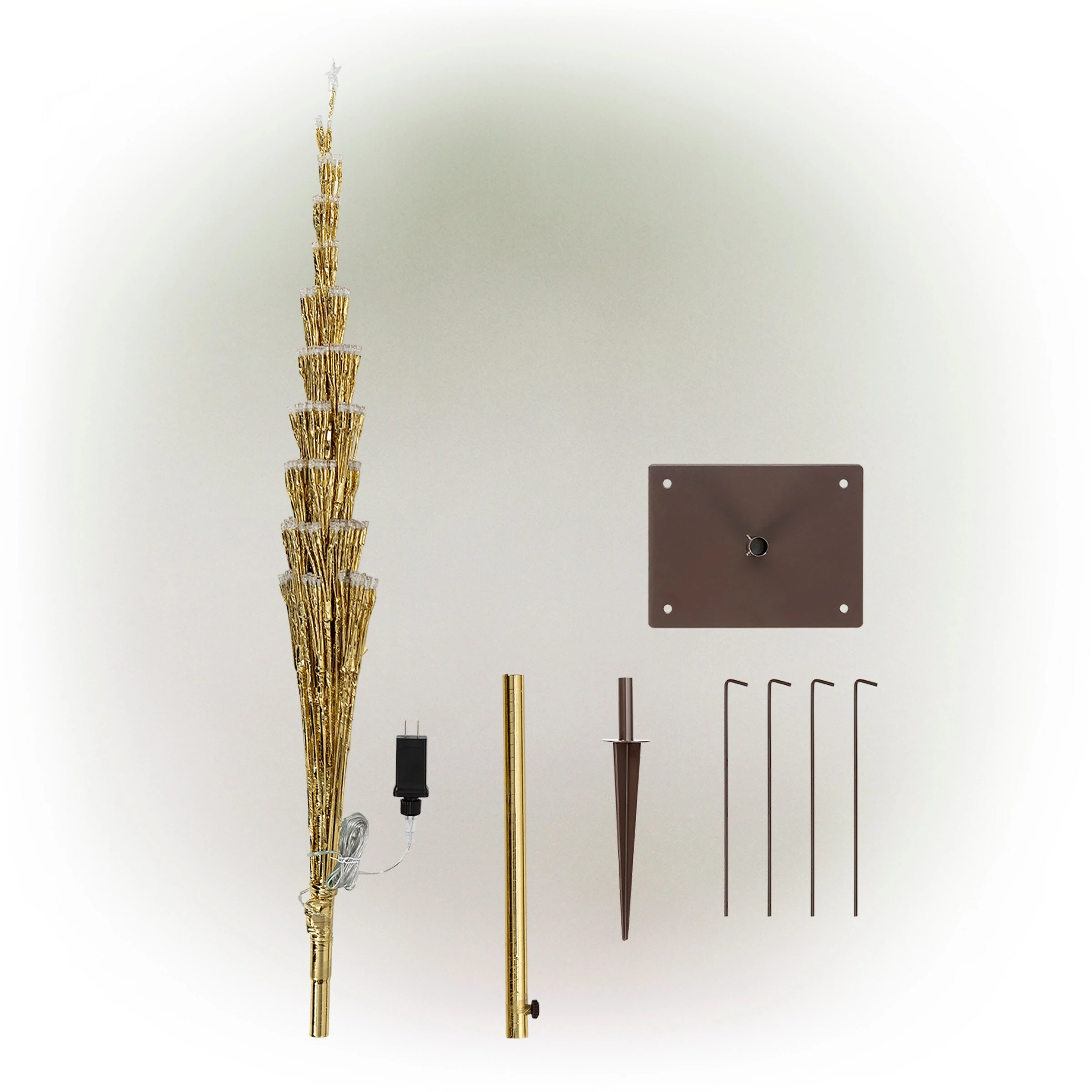 - Display tree indoors with floor base or place it in your lawn with the included ground stake