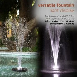 - Add a patriotic water light display to your garden or backyard’s water fountain that includes a 550 GPH pump and 33′ long cable, and sprays 3′ high and 2.5′ wide