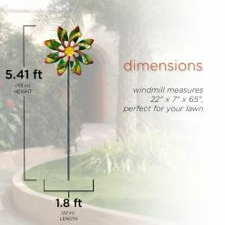 - Windmill measures 22″L x 6″W x 64″H, perfect for your lawn