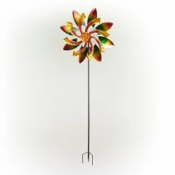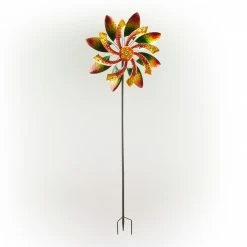 Add a touch of ambience to your patio, lawn, or garden with Alpine Corporation Floral Windmill Stakes. This durable, colorful spinner is made of metal to withstand the harshest wind conditions and last throughout all seasons. The green and orange blades spin around a center adorned with plastic gems, creating a stylish addition to your outdoor space. The colors blend together as the wind swirls the spinners to create a beautiful multi-color collage. The spinner is the perfect portable dΓ©cor for lining your driveway, walkways, or planting beds to be easily seen and admired by passers-by. The windmill includes a one-year limited manufacturer’s warranty for quality you can rely on. The Alpine Corporation Floral Windmill Stakes measure 22″ x 6″ x 64″, the perfect size for your lawn. Alpine Corporation is one of America’s leading designers, importers, and distributors of superior quality home and garden dΓ©cor products. Alpine’s award winning in-house design team continuously develops new and innovative “statements pieces” for your home and garden. Your outdoor living spaces will be the envy of the neighborhood with our wide assortment of fresh, fashionable and contemporary products, from beautifully crafted solar garden stakes featuring patented motion and fiber optic lighting technology to gorgeous glass and glow-in-the-dark birdbaths and feeders.