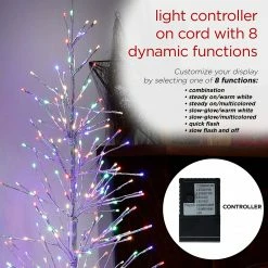 - Customize your display by selecting one of 8 functions – combination, steady on/warm white, steady on/multicolored, slow-glow/warm white, slow-glow/multicolored, quick flash, slow flash, and off