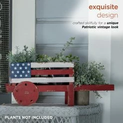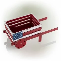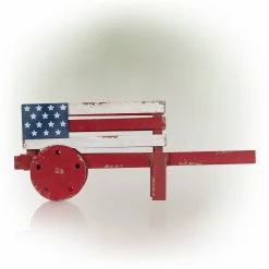 - Functional planter in the shape of a wheelbarrow offers a unique way of displaying your flowers, and adds a patriotic addition to your home’s interior or exterior dΓ©cor