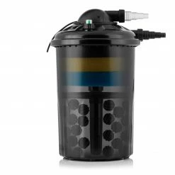 - Multi-stage biological and mechanical filtration process that uses UV filtering to provide maximum filtration and clear water for a healthy pond up to 3,000 gallons