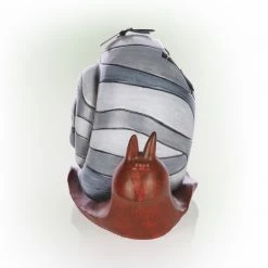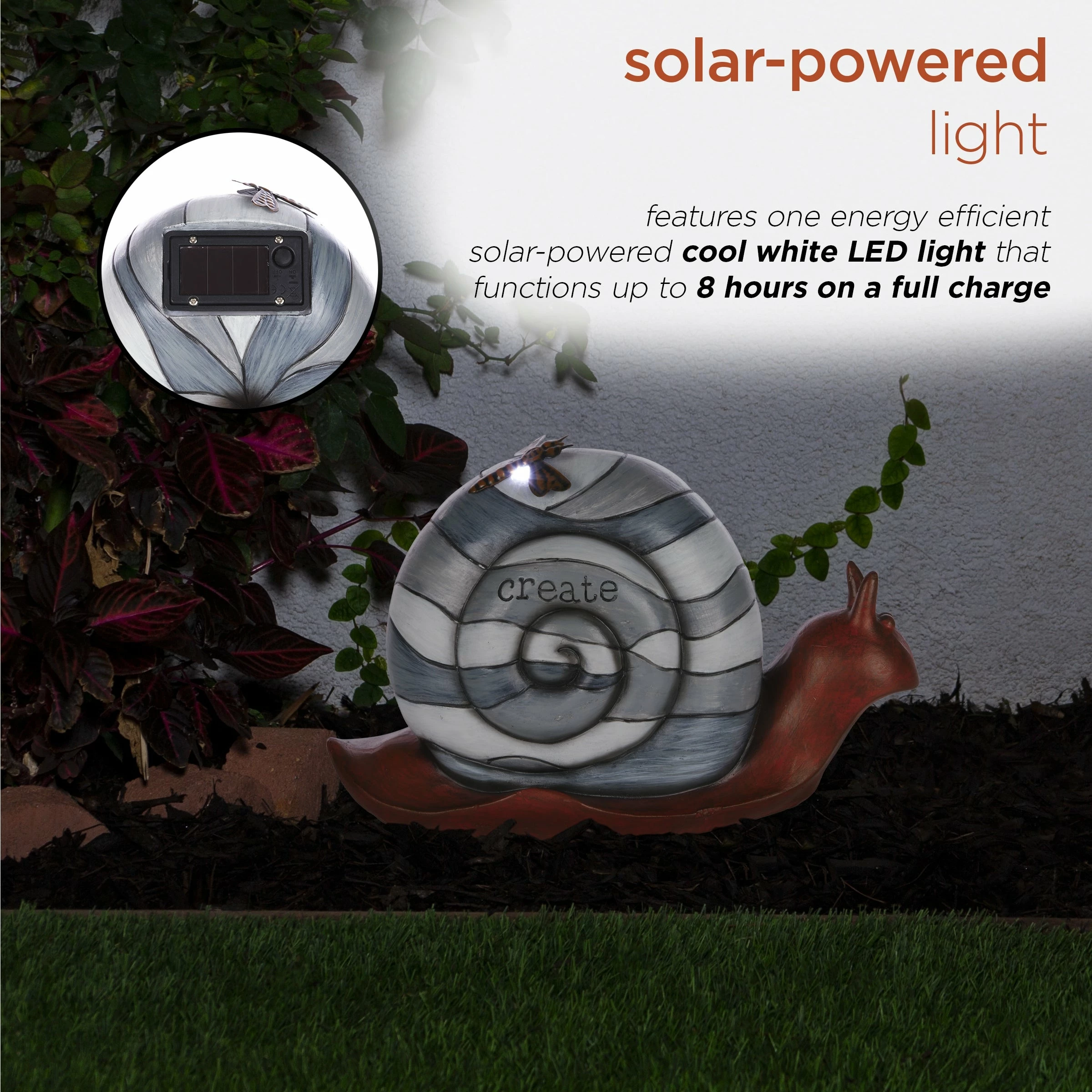 Enchant and charm everyone who visits your lawn with the Alpine Corporation “Create” Snail Statue with Solar-Powered LED Light. This little snail statue features a copper-colored body toting a multi-toned gray striped shell, engraved with the word “create” and accented by a copper dragonfly. This figurine pairs well with other outdoor garden statues for an adorable display, or alone as it sits happily in your garden, on your porch, or by your walk-up. Dotted with a solar-powered Cool White LED light that works up to 8 hours on a full solar charge, its surroundings will light up, even well into the nighttime. Your snail will bask in the sun during the day, then provide a soft glow that you can control with the included on/off switch. Constructed from a durable polyresin material, this snail will serve as a inspiring garden piece for many years. The statue measures 10″ x 5″ x 7″ and includes a one year manufacturer’s warranty from date of purchase.