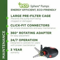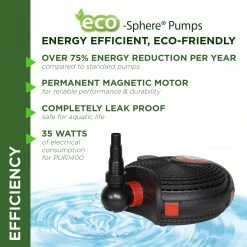 - Keeps water flowing in your garden’s ponds, cascading water fountains, and filtration systems, and is ecologically friendly and energy-efficient