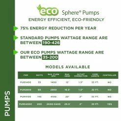 - Features an energy-saving design that will save you money, while offering over 75% reduction in energy consumption compared to standard pumps