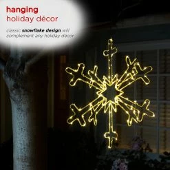 Welcome the holiday season with the Alpine Corporation Christmas Snowflake Hanging Decoration with LED Lights. Enchant visitors and passersby with the integrated 144 Warm White LED lights, that cast an enchanting glow on your yard or inside your home. This versatile decoration can be hung on your porch, at your front door, above your windows, above your tree, or anywhere else inside or outside for a beautiful holiday focal point. Easy and safe to set-up and use, this snowflake is operated by an included 16-foot long cord. Built from a durable metal, this gorgeous snowflake measures 15″L x 15″W x 18″H to effectively accent either your indoor or outdoor display . Includes a one-year manufacturer’s warranty from the date of purchase. Alpine Corporation is one of America’s leading designers, importers, and distributors of superior quality home and garden decor products. Alpine’s award winning in-house design team continuously develops new and innovative “statements pieces” for your home and garden. Your outdoor living spaces will be the envy of the neighborhood with our wide assortment of fresh, fashionable and contemporary products, from beautifully crafted solar garden stakes featuring patented motion and fiber optic lighting technology to beautiful fountains and delightful bird baths and feeders.