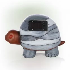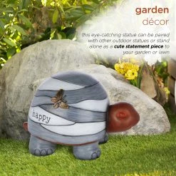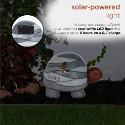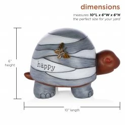Enchant and charm everyone who visits your lawn with the Alpine Corporation “Happy” Turtle Statue with Solar-Powered LED Light. This little turtle statue features a copper-colored head supporting a multi-toned gray striped shell, engraved with the word “happy” and accented by a copper butterfly. This figurine pairs well with other outdoor garden statues for an adorable display, or alone as it sits happily in your garden, on your porch, or by your walk-up. Dotted with a solar-powered Cool White LED light that works up to 8 hours on a full solar charge, your whole garden will light up, even well into the nighttime. Your turtle will bask in the sun during the day, then provide a soft glow that you can control with the included on/off switch. Constructed from a durable polyresin material, this turtle will serve as a inspiring garden piece for many years. The statue measures 10″ x 6″ x 6″ and includes a one year manufacturer’s warranty from date of purchase.
