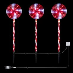 - Includes three lighted candy canes illuminate your front lawn, sidewalk, driveway, or pathway display