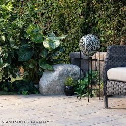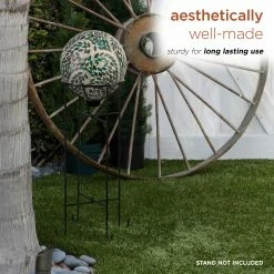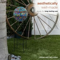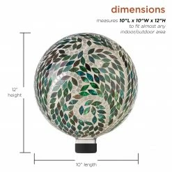 Add beautiful, bright color to your yard with Alpine’s Indoor/Outdoor Glass Mosaic Gazing Globe Yard Decoration. Made from different colored pieces of glass, this spherical yard art dΓ©cor provides a unique and decorative addition to your home’s interior or exterior dΓ©cor with its colorful and mosaic design. The multi-use glass gazing ball can be used in a variety of ways, including in your garden, patio, courtyard, or front door entryway or as an accent piece in your living room. Add one or multiple glass orbs to enhance your formal or informal garden’s natural beauty with their electrifying colors and iridescent shine. Use a metal stand (sold separately) in varying heights to help create visual interest and depth to your soon-to-be award-winning lawn. This colored glass gazing ball will add vibrant color and shine to your garden, and will help promote a healthy garden by reflecting light on sunny days. This colorful glass gazing sphere measures 10″L x 10″W x 12″H to fit almost any outdoor area and includes a one year manufacturer’s warranty from date of purchase.Alpine Corporation is one of America’s leading designers, importers, and distributors of superior quality home and garden decor products. Alpine’s award winning in-house design team continuously develops new and innovative “statements pieces” for your home and garden. Your outdoor living spaces will be the envy of the neighborhood with our wide assortment of fresh, fashionable and contemporary products, from beautifully crafted solar garden stakes featuring patented motion and fiber optic lighting technology to gorgeous glass and glow-in-the-dark bird baths and feeders.