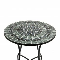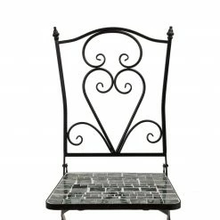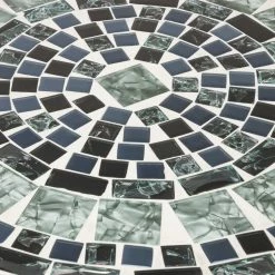 - Round tabletop and 2 chairs with marble glass mosaic design adorns this iron frame 3-piece bistro set, and provides convenient seating to your indoor or outdoor living space