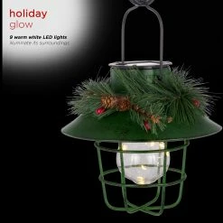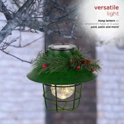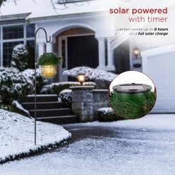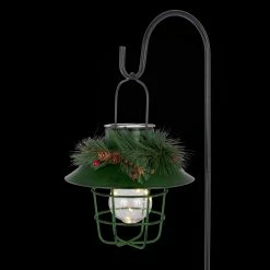 - Stylistic lantern with holiday greenery accent and included shepherd’s hook