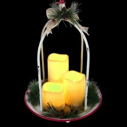 - With 3 LED warm white light flame-free candles, this piece provides a soft, homey glow wherever it goes