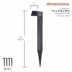- Each stake measures 2″ x 4″ x 18″, and the set includes a one-year manufacturer’s warranty from date of purchase.
