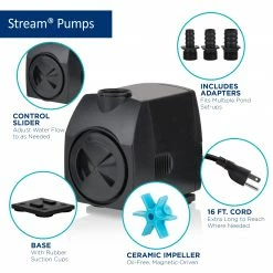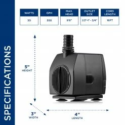 - 50 watt pump can be used vertically or horizontally with a 1/2″-3/4″ outlet, and includes a 33′ long cord for easy install in your fountain, pond, or birdbath