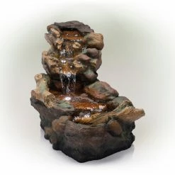 New π€© Alpine Corporation 41″ Long Indoor/Outdoor Stone River Rock Fountain With LED Lights π